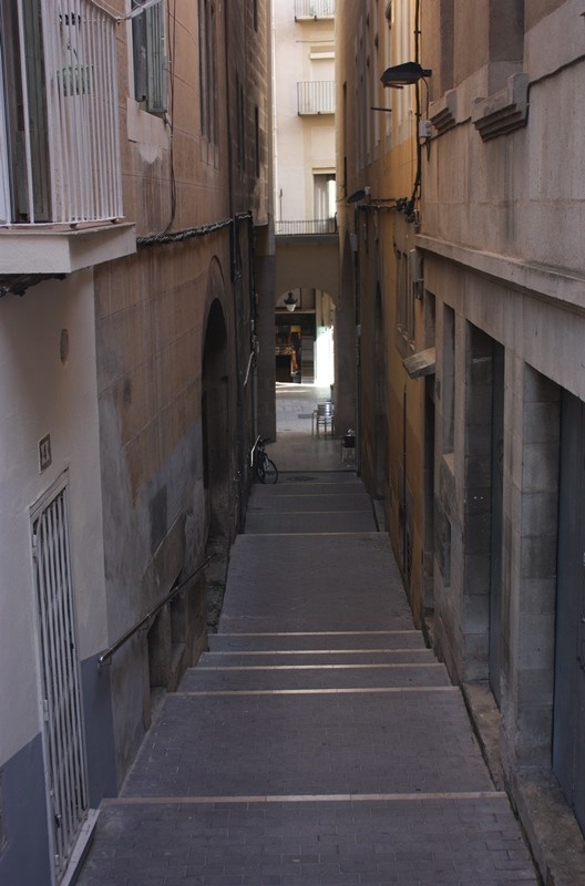 Me imaginaba Lleida, si es que alguna vez la imaginé, pequeña y recogida. La imaginación es engañosa, y Lleida no es muy pequeña, es bastante recogida, pero también es abierta y amplia. La zona vieja es un intríngulis de callejuelas estrechas que salen de una calle comercial (eje formado por las calles Sant Antoni, Major, Sant Joan, Carme, Cardenal Remolins), que según me dijeron tiene unos tres kilómetros. Las callejuelas son curvadas, algunas tienen escaleras, son oscuras y con sus nombres se podría escribir una cantiga.